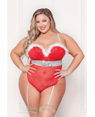 Rhinestone Studded Mesh Teddy w/Marabou Trim Red (3X/4X)