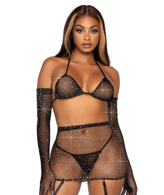 Risk Taker Rhinestone Bra Set - O/S (Black)