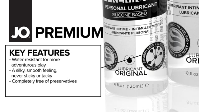 JO Premium is a classic silicone-based lubricant renowned for its luxurious texture and long-lasting glide. Designed to ensure maximum pleasure during extended use, its carefully balanced formula dries to a soft-touch finish that keeps skin feeling moist and supple. Water-resistant, this lubricant remains in place for maximum efficacy.