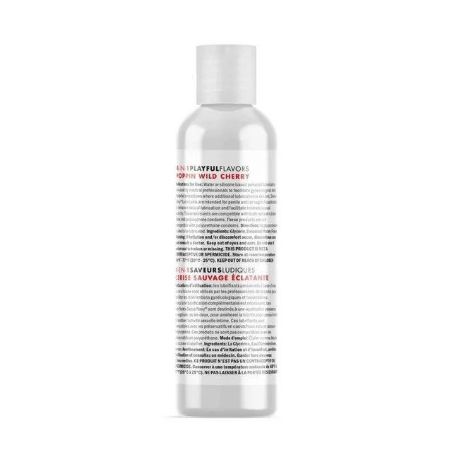 Swiss Navy 4-in-1 Poppin Wild Cherry Lubricant is a warming and flavored lubricant that can be used for unlimited amounts of fun. A simple sensual massage teasing foreplay oral fun or extended sex play just let your imagination run wild. The slippery warming formula heats up with frication and when you lick or blow on it. Poppin Wild Cherry is paraben-free sugar-free non-staining and non-sticky.