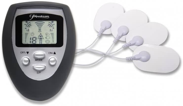 Give your sex life a 'charge' with this incredible deluxe electro-sex kit. This electric stimulation Shock Therapy Kit is perfect for first-timers and those familiar to e-stimulation alike. The easy-to-read LCD screen on the digital power control unit clearly displays the function and intensity level, and with 3 pre-programmed pulsation patterns to choose from, this attractive control unit sends electrical impulses to whichever body part you place the pad on. Choose from a sensuous tingle to a throbbing tap, all with the push of a button, and pick one of the 5 body zones to stimulate. With over 100 stimulation combinations to choose from, the possibilities are endless. Choose a setting on the power unit's dial to control the intensity and go from a sensuous tingle to a throbbing tap in seconds. Switch between 'slow' or 'fast' to control the frequency of the shock, or adjust the dial to control the strength of the shock. Using the timer function, the battery-powered unit will automatically shut off after a 15 minute interval. The pads are self-adhesive and reuseable, attach to the lead wire using snaps, and clean up easily after the fun with Pipedream Toy Cleaner and warm water. Great for muscle stimulation, neural stimulation, and an all-over relaxing electro massage!