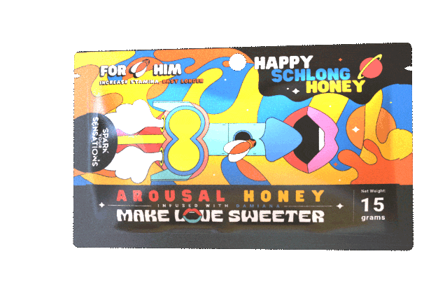 Happy Schlong Honeys is the world's first all-natural arousal honey. It's strawberry-flavored wildflower honey, infused with nootropic plants, ashwagandha, damiana, and other high-quality ingredients will be your favorite partner in bed. Eat one 30 minutes before sexual activity to boost libido and increase sensitivity down there, so you can feel sensations like never before!