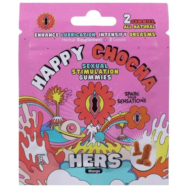 Want to feel even more sensual and help yourself get in the mood? Take one of these mango-flavored Happy Chocha sexual stimulation gummies an hour before you want to get busy.