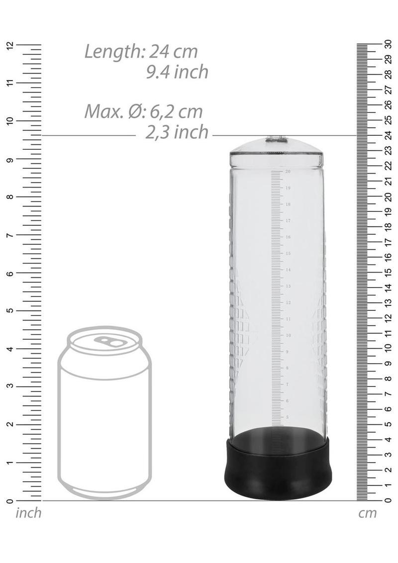 With a total cylinder length of 25cm (9.6") and a diameter of 7cm (2.76"), this high-quality pump gives you ample possibilities to grow in both directions! The total length of the hose is 21.5cm (10") and the insertion sleeve is made of smooth Silicone. Surprise yourself every time on how big you can get! At the touch of a button, the extremely powerful rechargeable pump will create a super strong vacuum, giving you a quick and powerful erection. The soft silicone opening will create a tight yet comfotable seal.