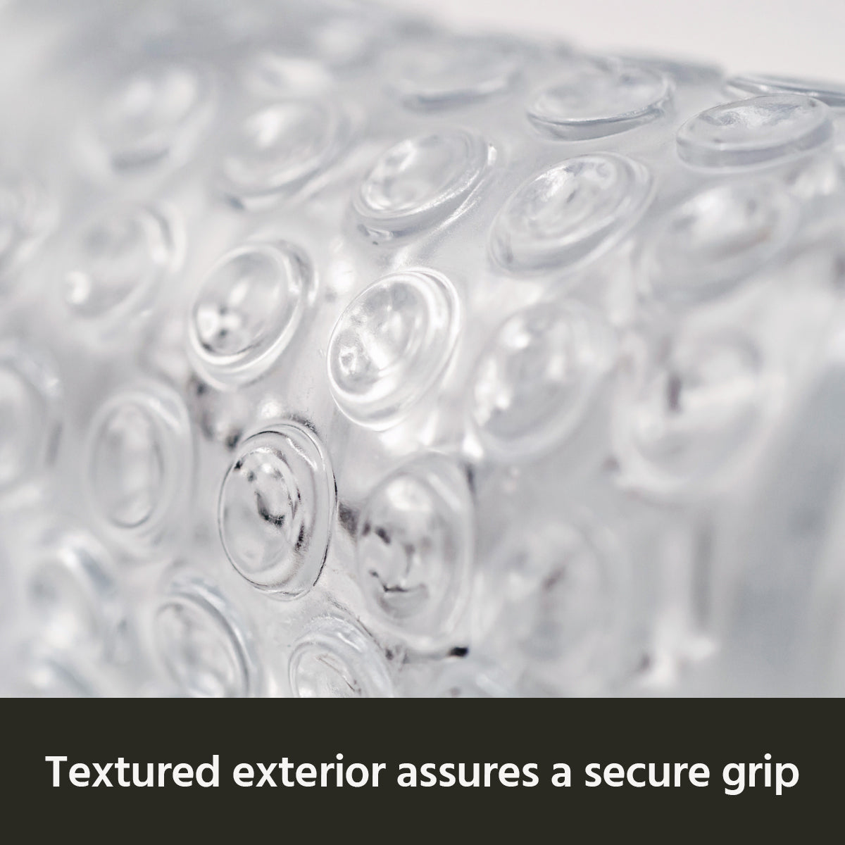 • Feel teasing stimulation on your frenulum as you guide your penis through the strategically placed knobs and bobbles.