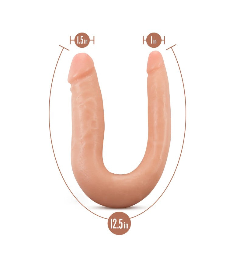 The doctor will see you now! The Dr. Skin Mini Double Dong is open for practice, ready to aid you in exploring creative possibilities. This soft, U-shaped toy flexes and curves, making it ideal for double penetration or for comfortable use between partners. Grip its U-shape curve and move both heads for blended pleasure! Featuring 2 different-sized ends for comfort: slim on one side, and average girth on the other. Made of our lab-tested non-porous PVC, Dr. Skin toys are body safe, phthalate-free, and easy to clean.