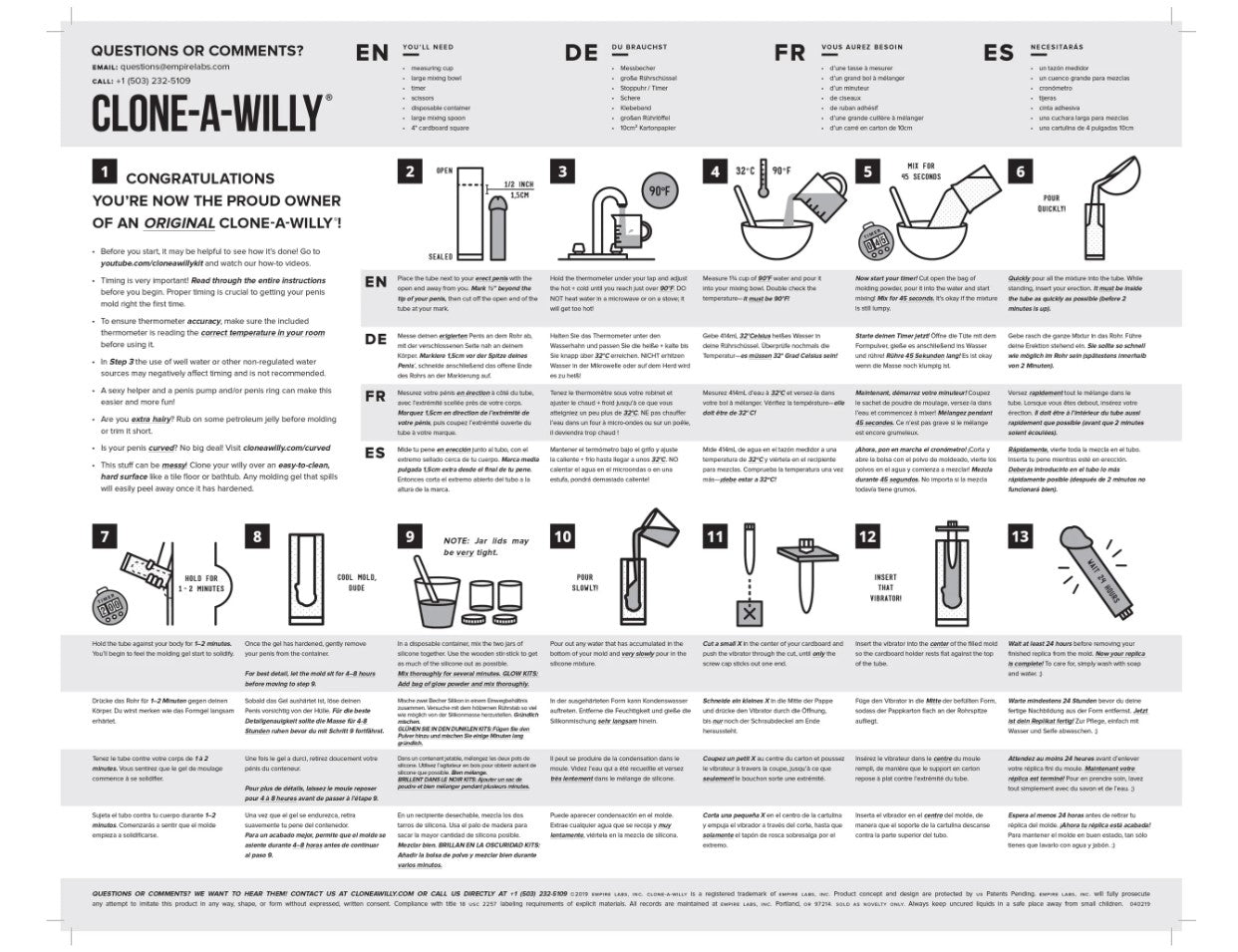 Capture unbelievably lifelike detail with our tested molding gel. Clone-A-Willy is the go-to kit for creating personalized, vibrating penile replicas in the comfort of your own home. Utilizing body-safe ingredients, the molding powder is composed of a high-grade, seaweed-based alginate and the silicone is a medical grade, platinum cure material - the pinnacle of sex toy safety. Simple instructions make this a super fun, easy process - mix, hold, pour, reveal! Each kit includes everything you need, plus a vibrations unit for extra fun.