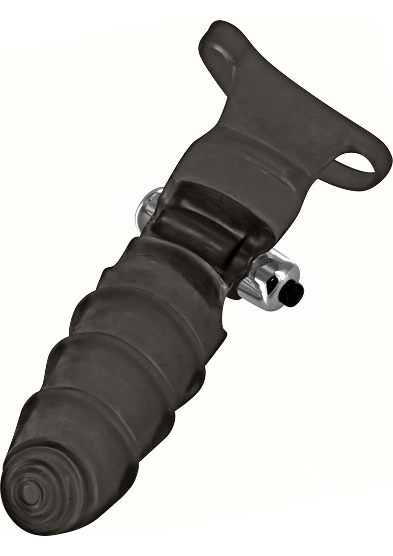 This uniquely shaped vibrating G-spot stimulator will take fingering your partner to a whole new level. The waterproof textured finger sleeves slips over your first two fingers, with a wrist strap that cradles the vibrating bullet in the palm of your hand. The uniquely shaped, ribbed, vibrating sleeve is ideally shaped to provide maximum pleasure while hitting all her hot spots. One size fits most